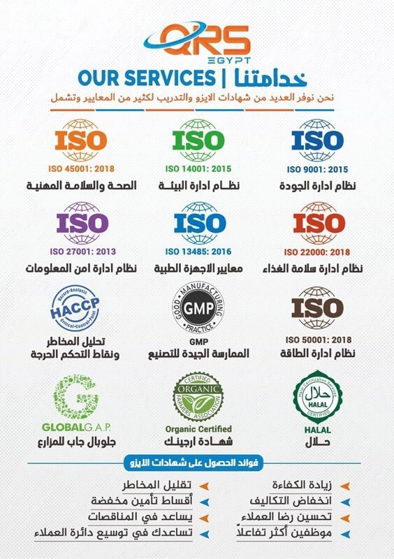 شركة كيو أر إس إيجيبت المانحة لشهادات الايزو |منح شهادات الأيزو بترخيص من أقوى الجهات العالمية - شهادات أيزو 9001 نظام إدارة الجودة - شهادات أيزو 14001 نظام إدارة البيئة - شهادات أيزو 45001 نظام إدارة الصحة والسلامة المهنية